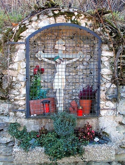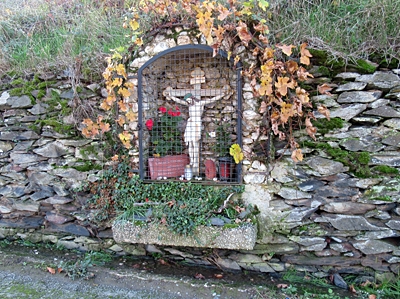 Nische mit Wegekreuz, in Weinbergstrockenmauer eingearbeitet. [1]