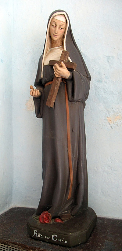 An Seitenwänden jeweils Nische mit Heiligenfiguren Judas Thaddäus und Rita von Cascia [italienische Nonne]. [1]