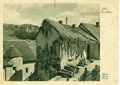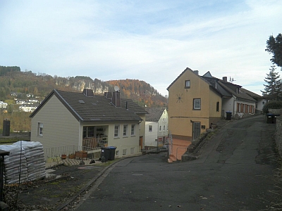 Malerische2 altes Haus in der Bergstraße, in welchem bis zur Bombardierung Amalie Frantz lebte, von uns Kindern "Tante Mala" genannt.