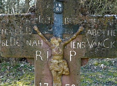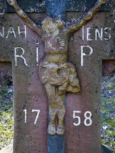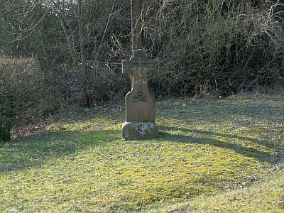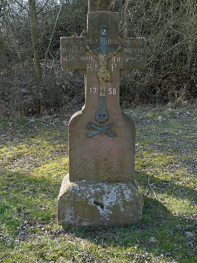 Sockelkreuz, Rotsandstein, bezeichnet 1758; möglicherweise ehemaliges Grabkreuz. [1]