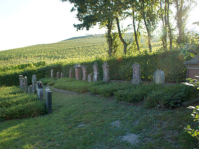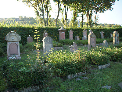 Nach den Katasterunterlagen erwarb in den neunziger Jahren des letzten Jahrhunderts die jüdische Gemeinde von der Zivilgemeinde ein Areal von 299 qm im Distrikt Im zweiten Wäldchensgraben - in einem von seiner geomorphologischen Lage her landwirtschaftlich nicht nutzbaren Gelände Die Eintragungen unter dem Datum 1898/99 vermerken die Nutzungsart ausdrücklich mit Begräbnisplatz und nennen als Eigentümer Elias Bonem (Metzger), Jakob Bonem (Handelsmann), Isaak Koppel, Richard Koppel (Handelsmann), Isaak Koppel jun. (Handelsmann), Bernhard Koppel (Handelsmann), Ruben Richard, Elias Richard, Levi Richard (Handelsmann), Marx Richard (Handelsmann), Theodor Richard (Handelsmann), Isaak Samuel (Handelsmann), Babette Samuel geb. Schloß, Brendel Samuel und Salomon Samuel. [1]