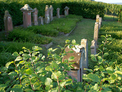 Eine hohe Buschhecke verhindert heute die direkte Einsicht in das Haus des Lebens, wo die letzten deutlichen Hinweise auf die einstige jüdischen Gemeinde Trittenheims erkennbar sind. Und die geschichtlichen Spuren sind deutlich: Anzeichen der Verwitterung gehen einher mit Spuren antisemitischen Hasses. Was Verwitterung und Zerstörungen von 1935 und 1992 überstanden hat, das erweist sich als erster Zugang. Entsprechend der Tradition weisen die Grabstätten nach Jerusalem, Gräber auf denen die alten Familiennamen Koppel, Richard, Samuel und Bonem zu erkennnen oder noch zu vermuten sind. Annähernd vierzig Jahre lang (etwa ab 1898/99 bis 1939) wurde dieser Ort zur ewigen Ruhestätte. Zuvor aber waren Angehörige darauf angewiesen, ihre Verstorbenen auf den jüdischen Friedhöfen der umliegenden Orte zu bestatten, wo sie meist inmitten ihrer Verwandten ruhten. Es läßt sich feststellen, dass die Famlien Bonem enge Beziehungen mit Neumagen-Dhron besaß, während die verwandtschaftlichen Bezüge der Familie Samuel nach Leiwen verweisen. Mit dem Grabstein der 1935 verstorbenen Johanna Bonem endet die Reihe der Gräber - jedoch nur scheinbar, denn an ein weiteres Begräbnis erinnert nur noch eine schriftliche Erinnerung.