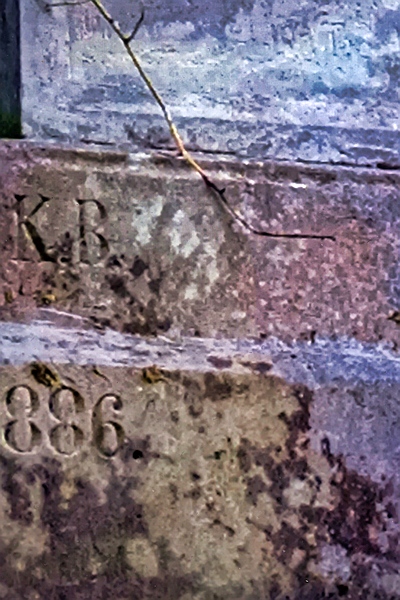 Im Jahr 1886 wurde das Wegekreuz errichtet. Die Inschrift „1886 K.B.” links am Sockel steht für das Errichtungsdatum und die Namen König Bartelmes. [1]