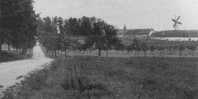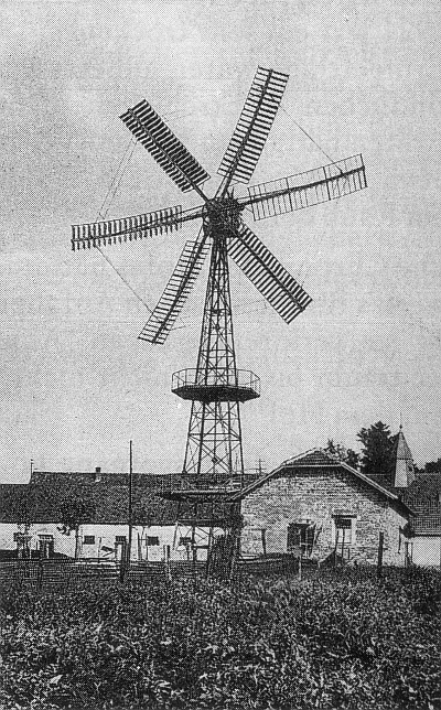 [...] Die galoppierende Inflation mit ihrer enormen Teuerungsrate zwang zu Einsparungen. Ein bedeutender Kostenfaktor war die Energieversorgung. Man entschloß sich deshalb die Stromerzeugung selbst zu übernehmen. Es wurde eine Windturbine aufgestellt.[...] Am 24. Juli 1924 begann man mit dem Bau des Fundaments. Seine Größe betrug 27 m³. Wie ein leider nicht mit Namen genannter Bruder in seinen Aufzeichnungen fein säuberlich festhielt, waren dazu 135 Sack Zement notwendig. Die Firma Fritz Bölke aus Wandsbek bei Hamburg lieferte zum Preis von 12.000 Goldmark die Turbine. Das Vorhaben stand jedoch unter einem schlechten Stern. Ein plötzlich einsetzender Sturm verbog die etwas zu groß geratenen Windflügel. Die kostspielige Reparatur mußte mehrfach wiederholt werden; die auf der Hochfläche auftretenden Windböen waren einfach zu stark für die Flügelblätter. Man war gezwungen, den Betrieb, kaum daß er aufgenommen war, wieder einzustellen.