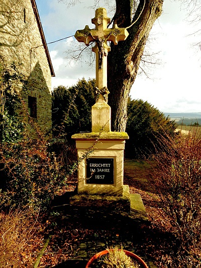 Fast in der Mitte des Dorfes steht unterhalb der Dorfstraße ein steinernes Kreuz. Dieses Kreuz ließ der verstorbene Generalvikar Martini gegenüber seinem Elternhaus aufrichten. Das Kreuz trägt die Jahreszahl 1857.