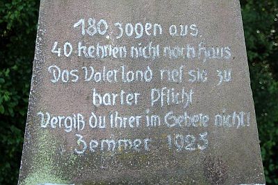 Gleichzeitig mit dem Kriegerehrenmal errichteter Denkstein mit von Pfarrer Eckert festgelegtem Sinnspruch. [1]