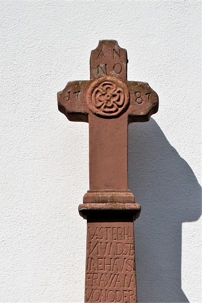 Das Schaftkreuz aus rotem Sandstein beeindruckt durch seine hochragende, schlanke und schlichte Form, die auf einen Meister aus Wittlich hinweist, der auch das Niedermanderscheider Kreuz fertigte. Es ist 2.20 m hoch, der Schaft unten 32 und oben 15 cm breit. Das Original trug vermutlich ein Kreuz mit Corpus, ähnlich wie das "Heintz-Kreuz" auf Altenhof. Das Oberteil des Kreuzes mit den gerundeten Kanten wurde 1787 erneuert und hat eine Breite von 35 cm. Im Schnittpunkt des Kreuzes ist eine Rosette, oberhalb "ANNO", auf dem Querbalken die Zahl "1787" eingemeißelt.
