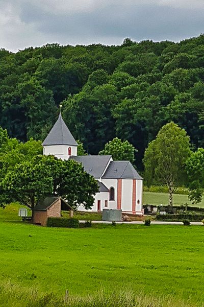 Im Asbüsch, an der Straße von Mannebach nach Fisch: Katholische Pfarrkirche Sankt Jakobus; barocker Saalbau, 1793; romanischer Westturm, Chor 1667. [1]