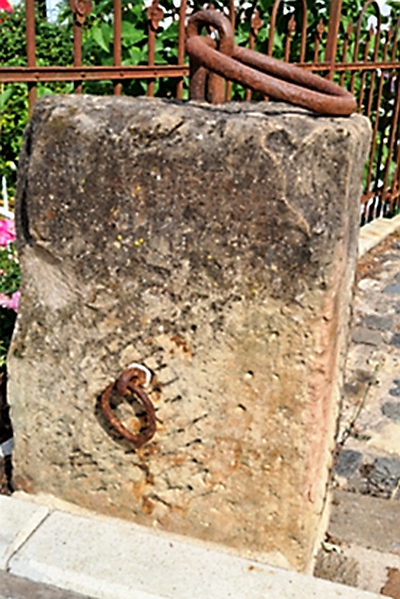 Vor dem Haus Nr. 89 ist heute noch ein Ankerstein zu sehen, der die Schwimmbrücke sicherte.