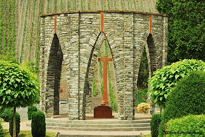 Spitzbogige aus Schieferbruchsteinen gemauerte, offene Pfeilerrotunde in einem Ehrenhain stehend. 1932 nach dem Plan des Kreisbauamtes von der Gemeinde errichtet. In Bezug zur Ortsgröße eine außerordentliche Kriegerehrung. Eingelassen Widmungs- und Gefallenentafel und am Sarkophag die Inschrift DAS BLUT DER GEFALLENEN WERDE DER SAMEN ZU NEUEN HELDEN. [1]
