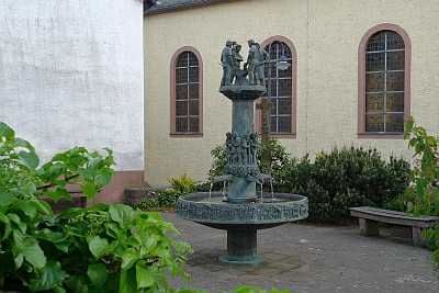 Brunnen der an die Eisenschmelze im Ort erinnert und der zugleich der Eifeldichterin Clara Viebig gewidmet ist.