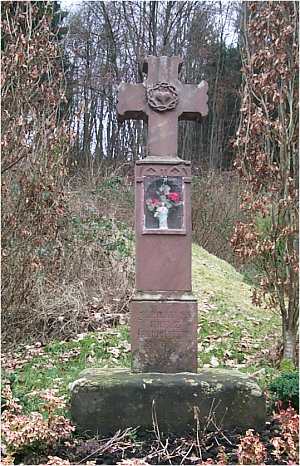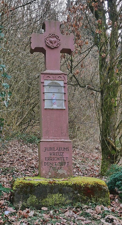 Steht (provozierend?) direkt über dem jüdischen Friedhof. Am Schaftfuß die Inschrift für den nichtgedeuteten Anlass Jubiläumskreuz errichtet am 7. September 1823. Im oberen Teil flache Nische mit Kreuzigungssymbolen, zeittypisches Abschlusskreuz. [1]