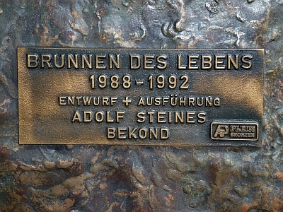 Der Brunnen des Lebens von Adolph Steines (*1935) zeigt die unterschiedlichen Lebensphasen des Menschen und versinnbildlicht den Lauf der Zeit. Er erinnert nicht nur an die Vergänglichkeit, sondern an das Glück der Geburt neuen Lebens. Auf dem Gelände des Brüderkrankenhauses entfaltet er seit 1992 seine Wirkung und dient den Patienten und Gästen als Rückzugs- und Ruheort. [1]