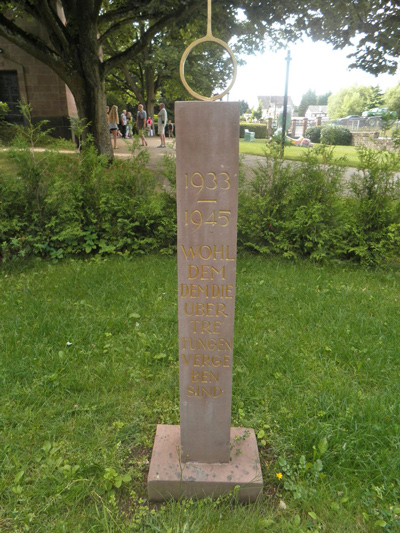 Im Jahre 1951 stiftete Pfarrer Wiebel das heute noch vorhandene Mahnmal mit der Inschrift: