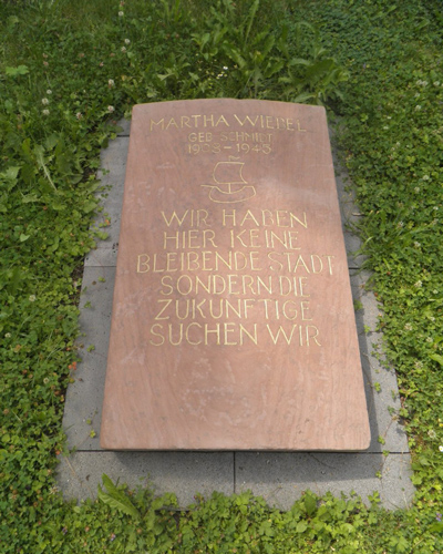 Als Frau Martha Wiebel, die Ehefrau des evangelischen Pfarrers Bernhard Wiebel, am 1. Juni 1945 verstarb, erfüllte man ihren Wunsch, neben Schwester Edmeé, mit der sie befreundet gewesen ist, beigesetzt zu werden. Dies geschah. Zunächst gab es zwischen den beiden Gräbern ein gemeinsames Holzkreuz mit der Inschrift: