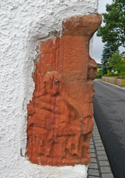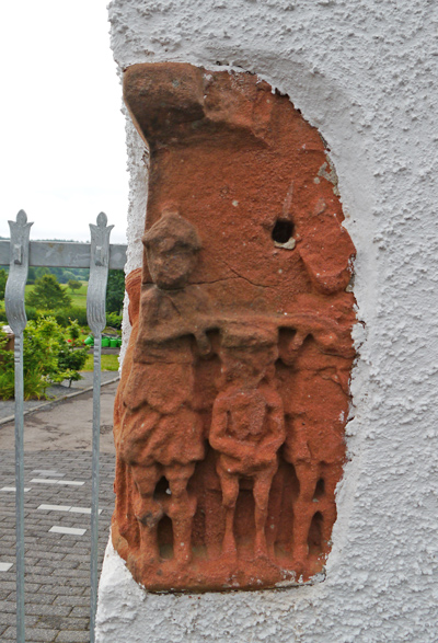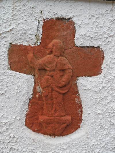 Am Eingang und innen an der Friedhofsmauer sind ehemalige alte Grabkreuze aus Sandstein in die Mauer integriert worden. Die meisten Kreuze oder Kreuzreste sind nicht mehr zu entziffern. Dennoch ist er Erhalt dieser früheren Kreuze sinnvoll. [1]