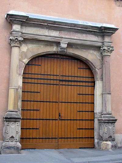 Ehemaliger Adelshof, (jetzt Pfarrhaus von Liebfrauen). Erhalten blieb nur der von korinthischen Säulen eingefasste Torbogen von 1605 und der doppelgeschossige, zum Hof in offene Galerieanbau. [2]