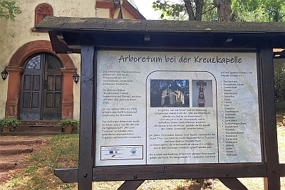 Das Arboretum (Baumsammlung) präsentiert sich um die Kreuzkapelle mit 25 verschiedenen, vornehmlich heimischen Baumarten. Die ältesten Bäume (Rosskastanie, Lärche, Sommerlinde und Robinie) wachsen seit über 180 Jahren an dieser Stelle. In den Jahren 1993 bis 1996 erfolgte eine Auffrischung und Ergänzung des Bestandes.