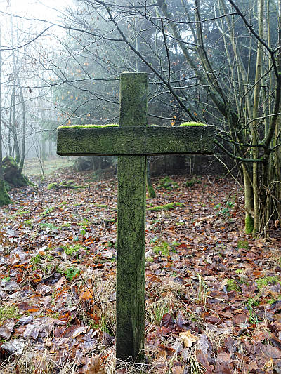 Bei dem Kreuz handelt es sich um ein schlichtes Holzkreuz. Eine Beschriftung ist weder auf der Vorder- noch auf der Rückseite zu erkennen. [1]
