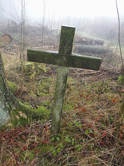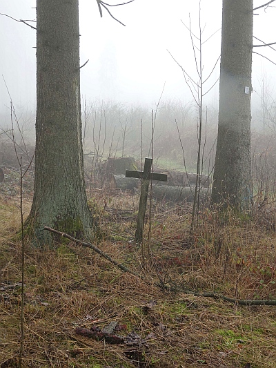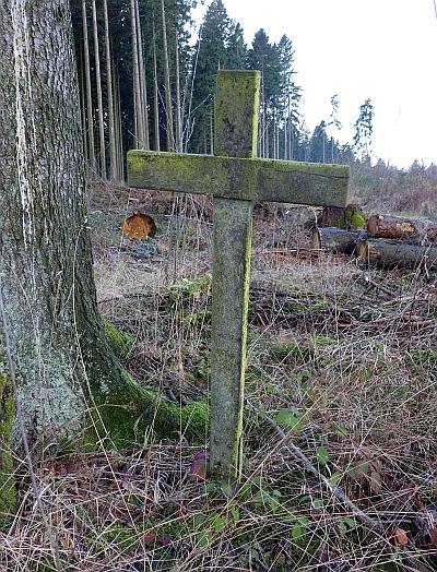 Bei dem Kreuz handelt es sich um ein schlichtes Holzkreuz. Eine Beschriftung ist weder auf der Vorder- noch auf der Rückseite zu erkennen. [1]