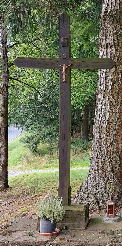 ein Kreuz am Waldesrand,