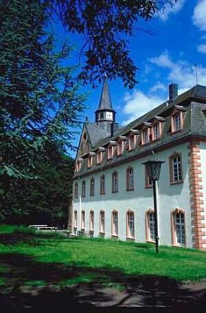 Eine kunsthistorische Einzelwürdigung kann in einem Heft nachgelesen werden, das am Schriftenstand der Kirche erworben werden kann. Offensichtlich haben wahrhaft kluge Frauen als Äbtissinnen und Priorinnen an der Spitze des Klosters gestanden, die nicht nur die geistliche Prägung, sondern auch die wirtschaftliche Lage des Konvents und der helfenden Laienfamilien günstig gestalteten. Erfreulicherweise gibt es hervorragende Dokumente, die den geistlichen Rang des Klosters bezeugen, und die erst in jüngster Zeit entdeckt wurden. Zum Beispiel hat die erste Äbtissin des Klosters einen Briefwechsel mit Hildegard von Bingen geführt, in dem die rechte Ordnung und die Struktur eines Frauenklosters erörtert wurden. Diese Dokumente verdienen das Interesse der heutigen Menschen. Man kann nur hoffen, dass sie bald der Öffentlichkeit zugänglich gemacht. Werden. Ein weiteres wichtiges Dokument sind die Gebete aus Sankt Thomas, die im 13. Jahrhundert aufgeschrieben und 1980 gedruckt wurden. Diese Gebete waren nicht für den liturgischen Gebrauch bestimmt, sondern für das persönliche Beten der Klosterfrauen. 1742 brannte das Kloster völlig ab und wurde 1744 im Barockstil neu erbaut. Die Zisterzienserinnen-Abtei Sankt Thomas bestand bis zum Jahre 1802. Im Zuge der Säkularisation wurde sie aufgelöst. Die Gebäude und der Grundbesitz wurden in Staatseigentum überführt. Der Bischof von Trier kaufte 1853 die Klostergebäude, um ein Haus der inneren Einkehr einzurichten. Von 1909 bis 1942 bewohnten Franziskaner das Kloster. Daran erinnern noch das Relief über dem Haupteingang (Franziskus predigt den Tieren) und der Name Pater-Odorikus-Saal. Nach dem Ende des Zweiten Weltkrieges wurde das Kloster, wie es im Ort immer noch genannt wird, als Priesterhaus und Bildungsstätte eingerichtet. 1957-1974 beherbergte es die Katholische Landvolkhochschule des Bistums Trier. Sie hat seither ihren Standort auf dem Stiftsberg in Kyllburg. [2]