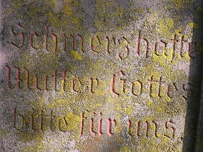 Frau Katharina Balmes aus der unteren Mühle in Mülbach stiftete das Kreuz zum Dank dafür, dass sie als sehr früh Verwittwete es geschafft hatte, ihre zahlreiche Kinderschar ins Erwachsenenalter zu bringen