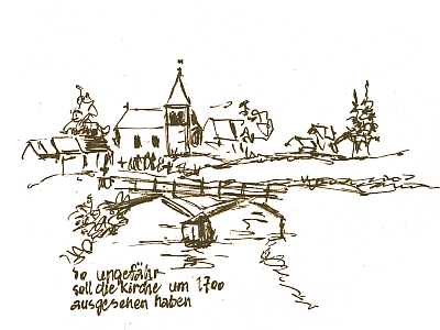 Bild 2: Zeichnung: P. Rudolf Fritz. Pfarrkirche St. Vedastus und St. Amandus Kordel, 1985.