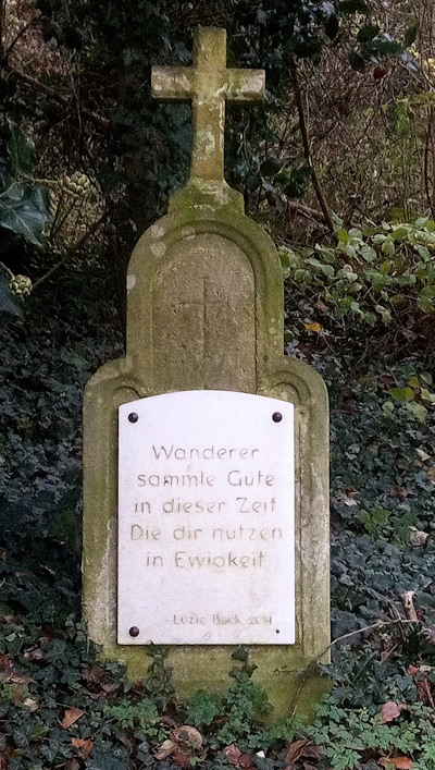 Grabkreuz, zwischenzeitlich restauriert und mit Schrifttafel versehen.