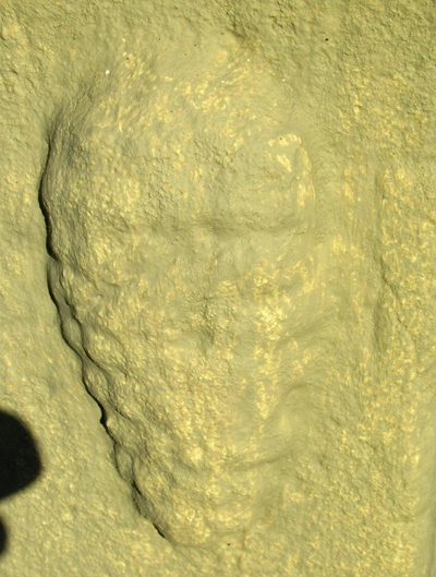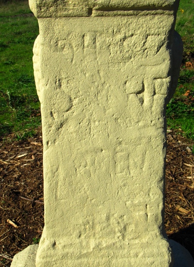 Sandstein mit gelblichem Anstrich, verwittert, Inschrift am Schaft nicht mehr lesbar, verwitterte Verzierung an Schaftseite. [2]