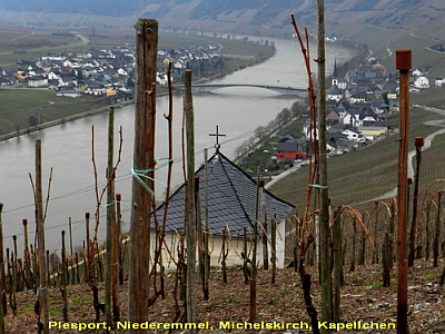 An dieser Stelle stand zur Römerzeit ein Heiligtum des Lokalgottes Mercurius Bigontius, dem die Furt durch die Mosel geweiht war, in christlicher Zeit wurde es durch ein Gotteshaus abgelöst, das dem heiligen Erzengel Michael geweiht war. Im Jahre 1350 wird es als matrix ecclesia (Mutterkirche) bezeugt. Wegen der zu großen und beschwerlichen Entfernung zum Pfarrort Piesport baute man schließlich am Moselufer eine neue Kirche mit dem Patrozinium des heilgen Michael.