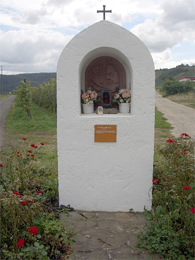 7 „Fußfälle“ durch die Weinberge erinnern an den Fall Jesu auf seinem Kreuzweg. Die Vorgänger – vor ca. 300 Jahren errichtet, waren verfallen. Die Kinder des Dorfes hielten damals Bittgänge für die Schwerkranken zu beten.