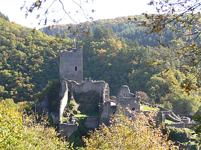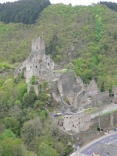 Stammsitz der Grafen von Manderscheid, in der 2. Hälfte des 12. Jahrhunderts erbaut, im 15. Jahrhundert u.a. um eine Vorburg erweitert.1173 erstmals urkundlich erwähnt. Bis 1780 war die Burg bewohnt, dann verfiel sie langsam. 1899 durch den Eifelverein erworben. [1]