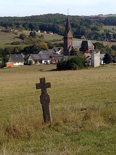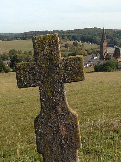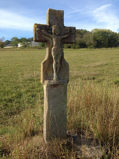 Südwestlich des Ortes in einer Wiese. Schaftkreuz, Sandstein, 18. Jahrhundert. [1]