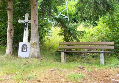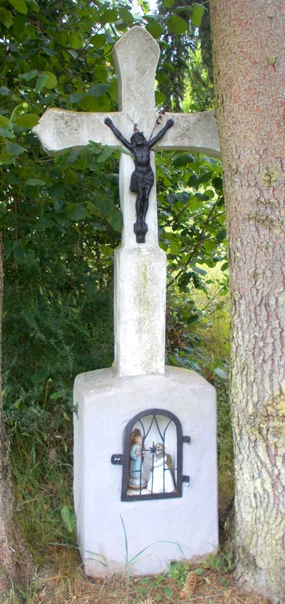 Nischenkreuz, am südlichen Ortsausgang der Hofstraße in Lonzenburg gelegen. Nische am Sockel, Kreuzabschluß mit gusseisernem Korpus, Rastbank daneben. [1]