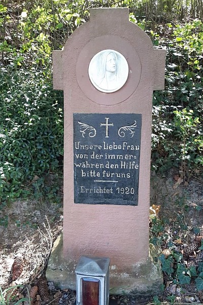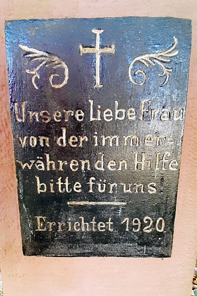 "Auf Botzelt", steht rechts an der Einfahrt zu einem unbefestigten Wirtschaftsweg dieses Marienkreuz aus dem Anfang des 20. Jahrhunderts mit der Aufschrift: "Unsere liebe Frau von der immerwährenden Hilfe bitte für uns, errichtet 1920". [1]
