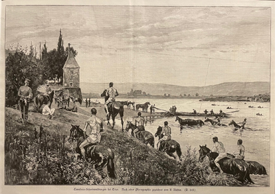[1] Jürgen Schlöder, Longuich, 2023. Foto: Cavalerie-Schwimmübungen bei Trier. Nach einer Photographie gezeichnet von A. Richter.