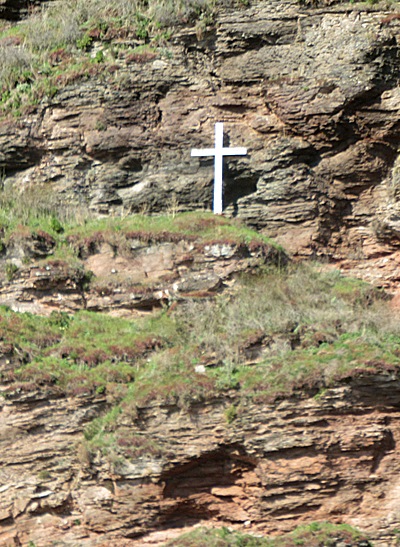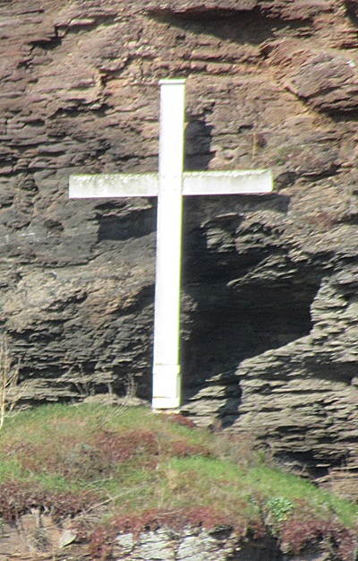 Weißes Holzkreuz, in der Felsenlandschaft der Weinbergslage "Erdener Treppchen" aufgestellt. [1]