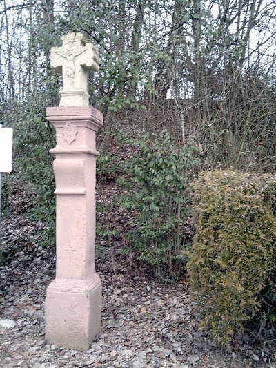 Material: Schaft aus rotem Sandstein, Abschlußkreuz gelber Sandstein