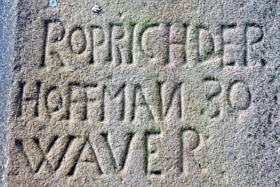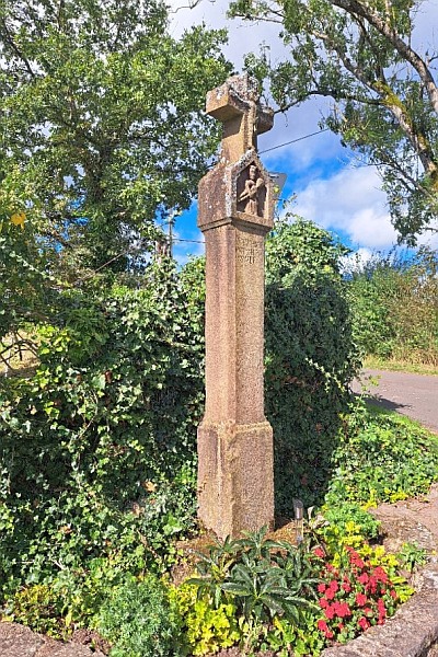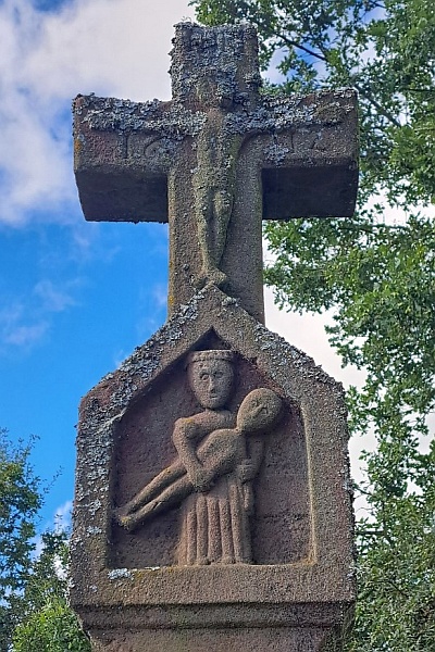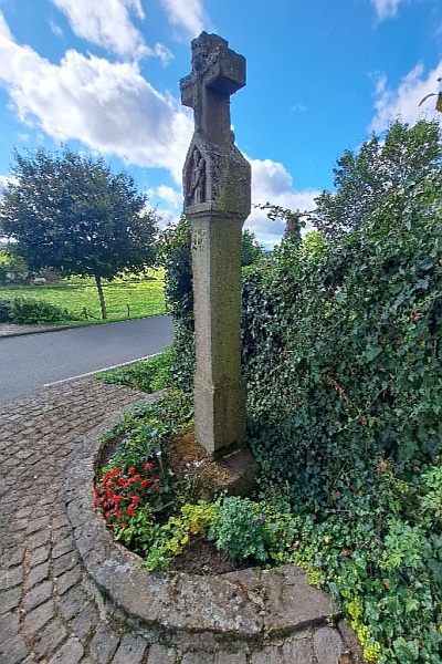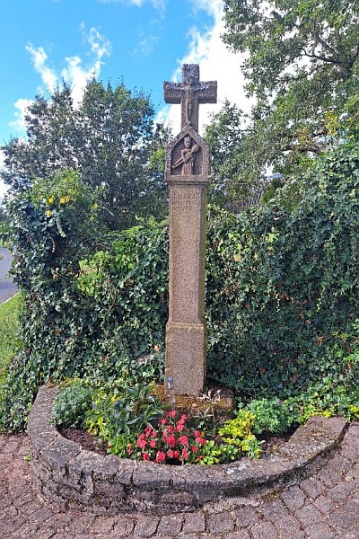 Hohes nachgotisches Nischenkreuz, bezeichnet 1612 Eine Inschrift am oberen Schaftende nennt den Erichter: ROPRICH DER HOFFMANN ZU WAVER. [1]