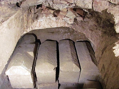Das Material der nur in Resten ergrabenen Gräber aus stuckverkleideten Ziegelmauerwerk vor der Westwand war später als Baumaterial für die Neuausstattung mit Brüstung und Altar verwendet worden (Ende des 9. Jahrhunderts datiert). Mit Beginn des ottonischen Neubaus der dreischiffigen Basilika mit Außenkrypta ab ungefähr 934 wurde das westliche Ende der Kammer aufgegeben und zur Fundamentierung der neuen Apsis vermauert. Der restliche Raum wurde durch Verlängerung nach Osten zur Mittelkammer der fünfschiffigen Außenkrypta. [1]