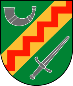 In Grün ein goldener Schräglinksbalken, belegt mit einer roten Zickzackleiste. Oben ein silbernes Horn, unten ein schräg aufgerichtetes silbernes Schwert.