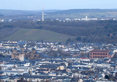Panoramablick hinter der Kapelle auf ca. 300m über NHN auf die Stadt Trier, das Westufer und angrenzendes Moseltal und die Höhenstadtteile. [2]