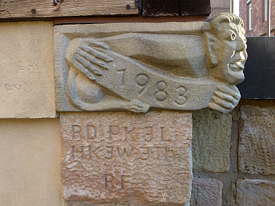 Im Heft: Pfarrkirche Sankt Vedastus in Sankt Amandus Kordel von 1985 wird auch der Schöpfer des „Männchens mit der Zunge“ genannt: Werner Hött. [1]