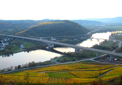 Aussichtspunkt auf ca. 260m über NHN, mit Ausblicke zur Longuicher Brücke, Autobahndreieck Moseltal, nach Schweich und Kenn. [1]