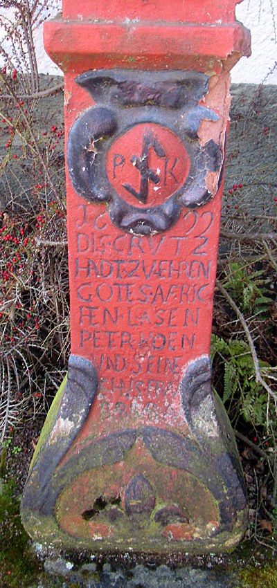 Inschrift: 1622 DIS CRUTZ HADT ZV EHREN GOTES AVRICHTEN LASEN PETER KOEN UND SEINE EHUSFRAW BARBARA
