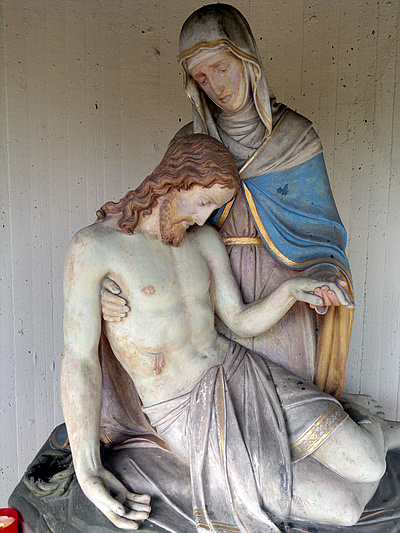 Die Pietà, das heißt Darstellung der Muttergottes mit dem Leichnam Christi, wurde übernommen. Sie stammt aus der Zeit um 1880. [1]