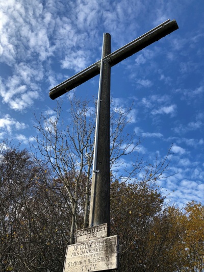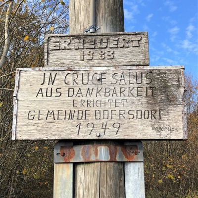 Das Denkmal wurde 1949 von aus dem Zweiten Weltkrieg wiedergekehrten Männern aus Üdersdorf errichtet, aus Dank über ihre glückliche Heimkehr.