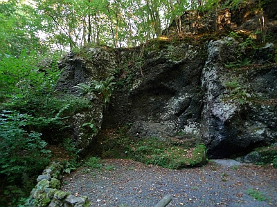 Direkt an einer Grillhütte im Wald gelegene Zeugen eines früher hier betriebenen Gewerbes.
