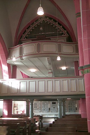 Eine ältere Orgel aus dem Jahre 1750 wurde 1877 durch die heutige Orgel auf der zweiten Empore unter dem Gewölbe ersetzt, erbaut von der Sulbacher Orgelbauerfamilie Stumm. [1]